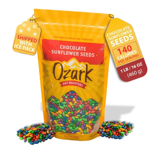 OZARK NUT ROASTERS: Semillas de girasol de chocolate, aperitivos cubiertos de chocolate, semillas de girasol confitadas gourmet de clase mundial,