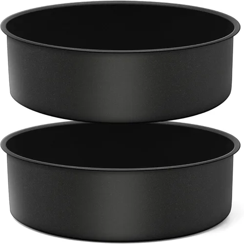P&P CHEF - Juego de 2 moldes redondos antiadherentes de 9.5 x 2.94 pulgadas Construido con núcleo de acero inoxidable puro con revestimiento saludable, sin productos químicos tóxicos que se filtran en los alimentos, no te preocupes por la situación de óxido y deformación, gran reemplazo para sartenes de aluminio y sartenes de metal. Los lados rectos de 2.94 pulgadas son ideales para hacer pasteles en capas o pizza profunda. Una buena transferencia de calor de la construcción de acero inoxidable se hornea uniformemente y es más fácil de dar forma a los pasteles. ¡Disfrutemos de un tiempo de horneado saludable y divertido con tus familiares o amigos! Especificación Material: núcleo de acero inoxidable con revestimiento antiadherente Color: negro Tamaño: Diámetro exterior: 9.8 pulgadas, diámetro interior: 9.5 pulgadas, altura: 2.94 pulgadas. Paquete: 2 piezas de moldes para pasteles del mismo tamaño ¿Cuál es la característica clave de los moldes para pasteles P&P CHEF Uso duradero: fabricado con construcción de acero resistente, no se deforma ni se oxida, resistente y saludable para un uso duradero. Antiadherente: el revestimiento antiadherente de la sartén exterior permite que los pasteles se liberen fácilmente, no se peguen pasteles a la parte inferior o a los lados, fácil limpieza a mano. Lados rectos: los lados rectos serían favorables para dar forma a los pasteles, y salir uniformemente sin lados irregulares, sin residuos de masas. 2.94 pulgadas de profundidad: 2.94 pulgadas de profundidad que extienden la capacidad del molde para pasteles, ideal para contener más alimentos o pastel. A prueba de fugas: el diseño de una sola pieza es sin costuras y a prueba de fugas sin ocultar residuos de alimentos, para evitar que las masas y las salsas se derramen. Bordes lisos: los bordes enrollados sin puntos afilados, cómodos para agarrar las sartenes, no dañan tus manos. Consejos cálidos 1. Lava los moldes para pasteles con agua jabonosa antes de usar. 2. Se recomienda lavar a mano con esponja suave, y no utilizar utensilios afilados para rayar su superficie, para proteger su revestimiento antiadherente. 3. Utiliza un paño suave y seco para limpiar el agua y guárdalos en un lugar seco durante su larga vida útil.