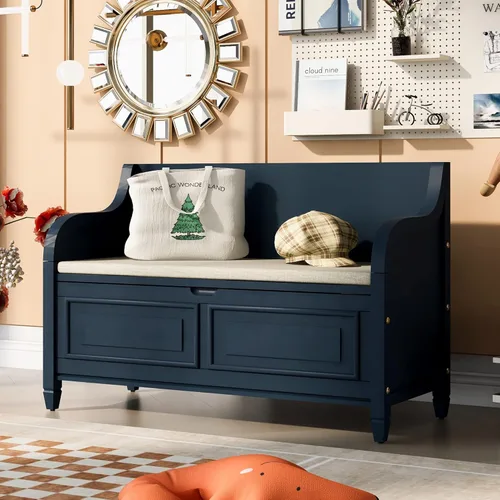 Banco de almacenamiento de estilo rústico: este banco de almacenamiento de estilo rústico tradicional es muy clásico y elegante, el banco de almacenamiento para sala de estar con estilo rústico refleja una especie de belleza eterna, como si el bautismo del tiempo, haga que tus muebles se vean más de buen gusto, más retro. Este banco de zapatos multifuncional viene en 5 colores para que elijas, que combinarán fácilmente con la decoración de tu hogar. Banco de almacenamiento con espacio de almacenamiento oculto: este banco de almacenamiento con almacenamiento debajo del asiento añade asiento y almacenamiento a cualquier espacio de tu hogar. Además, hay un amplio espacio de almacenamiento oculto debajo del asiento. Puedes poner almohadas, mantas u otros artículos que no se usan comúnmente, lo que ahorra mucho espacio y hace que tu hogar se vea más ordenado. Banco de almacenamiento multifuncional: el banco de almacenamiento multifuncional para zapatos se puede utilizar en muchas habitaciones de tu hogar, en tu pasillo delantero, entrada, al pie de tu cama, o en tu sala de estar y mucho más. La bisagra suave y de seguridad garantiza que la parte superior del asiento no se cierre de golpe, lo que es seguro y fácil de usar para niños y ancianos. Banco de almacenamiento duradero: el banco de entrada de madera está hecho de marco de madera maciza de alta calidad y patas de madera única para garantizar la estabilidad y durabilidad. Banco de almacenamiento con cojín extraíble que siempre puedes quitar si no lo deseas. Dimensiones y montaje del banco de almacenamiento: 42 pulgadas de largo x 18 pulgadas de ancho x 29.5 pulgadas de alto. Peso del producto: 41.8 libras, dimensiones interiores del banco: 19.2 pulgadas de largo x 15.4 pulgadas de ancho x 11.4 pulgadas de alto. Dimensiones del asiento superior: 39 pulgadas de largo x 17 pulgadas de ancho. Capacidad de peso: parte superior del banco: 250 libras, estante: 55 libras. 1 paquete de entrega. , cualquier problema no dude en contactarnos, resolveremos su problema lo antes posible