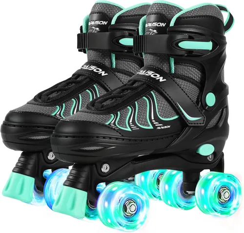 PAPAISON Patines de ruedas para niñas de 8 a 12 años, talla ajustable, patines cuádruples para mujeres jóvenes con ruedas que se iluminan, para