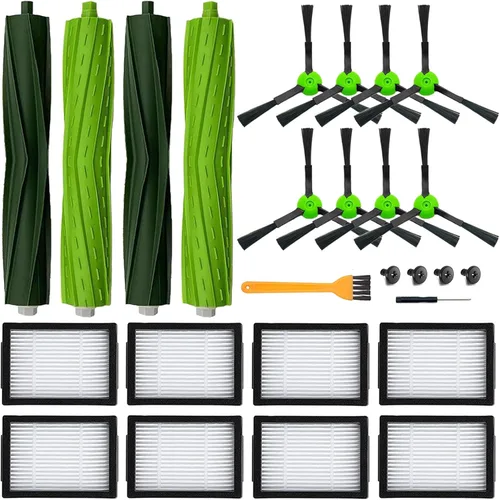 Compatible con iRobot Roomba i7+(7550)/i7 i3+(3550) i4+(4550 4552) i6+(6550) i8+(8550) E5(5150) E6(6198) j7 Combo i5+j5+ I & E & Aspiradora serie J (no Compatible con J7+/Plus Material: estas piezas de repuesto están hechas de PC de alta calidad, compatibles y funcionan como el original, el cepillo lateral no rayará el suelo y los muebles, garantiza en gran medida la seguridad y el efecto de limpieza durante el proceso de uso Fácil de mantener: estas piezas de vacío de relación pueden lavarse y reutilizarse, se sugiere reemplazar las piezas de repuesto cada 2-4 meses para mantener su limpiador robótico funcionando con alto rendimiento. Si los cepillos laterales están doblados o rizados debido al envío, recuperarlos simplemente sumergiéndolos en agua tibia durante varios minutos Paquete valioso: incluye 2 juegos de cepillos de goma multisuperficie, paquete de 8 filtros, 8 cepillos laterales, 1 paquete de herramientas de limpieza, 1 paquete de destornillador Servicio al cliente: Si cumple con cualquier calidad u otros problemas después de la compra, lo resolveremos en 24 horas