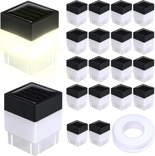 Características: Con énfasis en la vida iluminada, nuestras tapas solares para postes de cubierta funcionan con energía solar. El uso de la luz solar para el funcionamiento disminuye la necesidad de electricidad, por lo que es una solución de iluminación segura y eficiente desde el punto de vista energético. Esto también garantiza una instalación y operación prácticas. Fabricadas principalmente con plástico grueso de calidad, estas luces para poste de cubierta ofrecen durabilidad y longevidad. El diseño robusto garantiza la resistencia a los elementos climáticos y los impactos físicos, asegurando que sus luces permanezcan en forma ideal durante un período prolongado. Disfruta de un atractivo estético y una funcionalidad confiable con productos diseñados para durar. Especificaciones: Material de la tapa: principalmente plástico Color de la luz: amarillo cálido Tamaño: Tapa: aproximadamente 2 x 2 pulgadas / 5 x 5 cm Cinta: aproximadamente 65.62 pies / 20 m El paquete incluye: 20 x Luces solares para tapas de postes de cerca 1 cinta adhesiva Notas: Medición manual, puede haber ligeras diferencias en el tamaño. El color puede variar ligeramente debido a las diferentes pantallas. Puede existir riesgo de enrollamiento, mantente alejado de los niños pequeños. Para garantizar los mejores resultados de carga, recuerda quitar la pestaña de la cubierta de la lámpara antes de cargarla.
