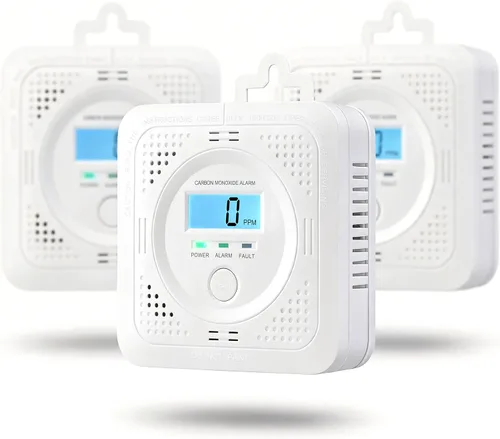 Paquete de 3 detectores de monóxido de carbono, pantalla LCD, concentración en tiempo real, falla de batería, LED, 60 segundos, historial de