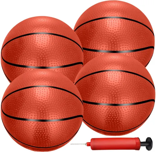 Construcción duradera de PVC: Hecho de PVC inflable de alta calidad con una superficie texturizada similar al caucho; ligero, flexible y diseñado para jugar repetidamente en interiores y exteriores Tamaño perfecto de reemplazo de mini aro: cada bola mide aproximadamente seis pulgadas cuando está inflada; bolas de repuesto ideales para mini aros montados en la puerta, juegos pop-a-shot, aros de arcade y aros de trampolín Juego completo con bomba y aguja: incluye cuatro mini pelotas de baloncesto inflables más una bomba de mano compacta y una aguja de metal; la aguja se almacena de forma segura dentro del mango de la bomba para mayor comodidad Repuestos perfectos para montar en la puerta y mini aros de baloncesto. Ideal para principiantes y entrenamiento de baloncesto. Para niños, adolescentes y adultos. Listo para interiores y exteriores: adecuado para dormitorios, salas de juegos, sótanos, garajes y configuraciones de patio trasero; un versátil juego de mini baloncesto para entrenamiento, uso de reemplazo o diversión diaria