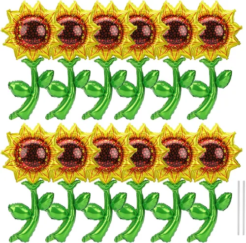 Paquete de 12 globos de girasol de 36 pulgadas, kit de arco de globos de Mylar de girasol, guirnalda de globos de girasol de papel de aluminio