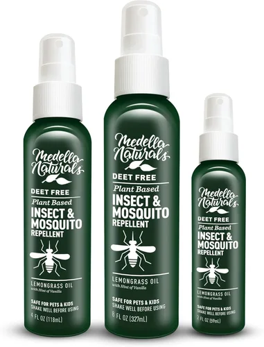 Spray antiinsectos sin dietas: a diferencia de los aerosoles para insectos DEET, Medella te protege de mosquitos, moscas negras, que no se ven y mosquitos utilizando aceite esencial de hierba de limón, sin productos químicos nocivos. Nuestro spray repelente de insectos también es no inflamable y seguro para el césped. Aerosol para insectos que huele agradable: el spray para mosquitos Medella tiene un aroma de gran olor que te encantará, huele a hierba de limón con un toque de aroma a vainilla. Tampoco deja residuos molestos y pegajosos después de rociarlo sobre la piel. Seguro para mascotas y niños: dado que nuestro spray antiinsectos para exteriores no contiene químicos, es seguro de usar en mascotas y niños cuando se utiliza según las indicaciones. Es el repelente definitivo para mosquitos e insectos que puedes usar para que toda la familia pueda disfrutar del aire libre. Probado para funcionar: protégete de los insectos con un producto respaldado por estudios. En un estudio realizado por el Laboratorio de Cría de Moscas Negras y Bioensayo de la Universidad de Georgia, nuestro spray de insectos repelió el 90% de las moscas negras y mosquitos hasta 5.5 horas después de la aplicación. Apto para viajes: el repelente de insectos y mosquitos Medella viene en 3 tamaños prácticos: 2 onzas, 4 onzas y 8 onzas. Nuestro aerosol para insectos puede adaptarse fácilmente a bolsas de golf, cajas de aparejos, mochilas y mucho más.