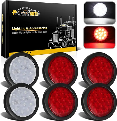 El paquete incluye 4 piezas de luces LED redondas de parada, giro y cola de 4 pulgadas de color rojo y 2 piezas de luces LED redondas antiniebla de respaldo/reversa de 4 pulgadas de color blanco, ojales de goma redondos y coletas de cable de 3 clavijas están incluidos para una instalación completa; Estas luces LED redondas impermeables para remolque de 12 LED sirven las siguientes funciones: luz de freno, luz direccional, luz trasera (luces rojas) y luces de respaldo o luces de marcha atrás (luces blancas); montaje empotrado con ojales de goma y cables de conexión y acepta enchufe estándar de 3 clavijas; estas luces traseras redondas son de aproximadamente Anillo de ojal de 5 pulgadas y diámetro interior de 4 pulgadas y 1 3/16 pulgadas de grosor. Taladra un agujero de aproximadamente 4.5 pulgadas para instalar; IP65 resistente al agua y no lo utilices bajo el agua Fácil de instalar: el blanco es la tierra, el rojo es el alto brillo y el negro para bajo brillo; estas luces LED redondas de 4 pulgadas son resistentes a los impactos y menos susceptibles a daños por golpes. Cada luz de remolque redonda está sellada herméticamente contra el agua. Estas luces LED necesitan menos energía, generan menos calor y son más brillantes, ligeras y se encienden más rápidamente que una bombilla incandescente; Entrada de 12 voltios CC; Ajuste universal: estas luces traseras de remolque LED redondas son compatibles con casi todos los automóviles y dispositivos equipados con una fuente de alimentación de CC de 8 a 16 voltios como camión semi, semirremolque, camión de servicio, autobús, camioneta de servicio, camión utilitario, remolque cerrado, remolque utilitario, remolque de barco, flotador de desfile, remolque de caballo, remolque utilitario, camioneta pickup, UTE, UTV, etc Piezas de auto, Tío Sam. Luz LED PARTSam con chips LED de alta calidad.