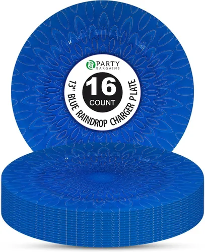 Pregunta sugerida sobre PARTY BARGAINS Platos de carga de plástico de 13 pulgadas, diseño de gota de lluvia, azul, cargadores de mesa redonda desechables para bodas ¿Qué incluye exactamente este set?