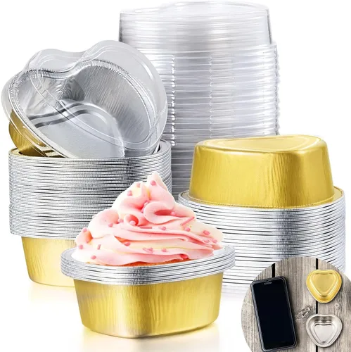 Juego de moldes para pasteles de papel de aluminio: hay 80 juegos de moldes para pasteles de papel de aluminio con tapas transparentes que miden 2.95 x 2.76 x 1.5 pulgadas/3.0 x 2.8 x 1.5 in, con tapas cerradas que miden 0.39 pulgadas/0.4 in de altura, y la capacidad de la taza es de aprox. 1.86 onzas/1.9 fl oz, suficiente para hacer pasteles de chocolate en forma de corazón o postres para tu familia o invitados en ocasiones festivas Fiables y prácticos: estos adorables mini cupcakes están hechos de papel de aluminio y pueden soportar temperaturas de hasta 220 grados Fahrenheit; superficie lisa, corazón clásico, color romántico, fácil de limpiar y usar, hace que tu proceso de horneado sea simple y divertido Fácil de usar: hecho de papel de aluminio grueso y seguro, lo que permite que las tazas sean estables, fáciles de usar, simplemente coloca el relleno en los moldes para hornear y ponlo directamente en el horno, luego sácalo sin tener que usar otra sartén, y las sartenes de aluminio pueden ahorrarte tiempo manteniendo tus manos limpias y ordenadas; recuerda limpiar estas tazas para hornear antes de usarlas Lleno de dulce vibración: el color clásico y la forma romántica de corazón se adaptan al ambiente alegre del día de San Valentín, prepara un delicado pastel de chocolate en forma de corazón y pudín de caramelo para tu amante o novia, la comida que haces por ti mismo es más significativa y feliz, deja que tu amante sienta tu preparación, para que puedas tener un romántico e inolvidable día de San Valentín Aplican diversas ocasiones: estos mini moldes desechables para pasteles son adecuados para picnics familiares, campamentos, catering, clubes de equipo, bodas, fiestas y otras fiestas en interiores y exteriores, y estos pasteles ligeros están disponibles para que todos los disfruten; también son buenos para almacenamiento de cocina, llenándose de cupcakes, chocolate, pudín de caramelo, crujientes y condimentos surtidos como caviar, miel y salsa