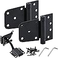 HOME MASTER HARDWARE Kit de puerta de cierre automático, color negro, bisagras en T de resorte de 3.5 pulgadas, paquete de 2 + pestillo de puerta
