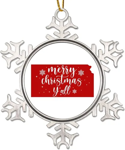 Patriotic American State Christmas Ornaments for Tree Kansas Christmas Tree Decoration Keepsake Merry Christmas Y’All Metal Snowflake Christmas