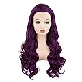 Pelucas sintéticas de encaje frontal de densidad pesada atadas a mano de 24 pulgadas, color morado