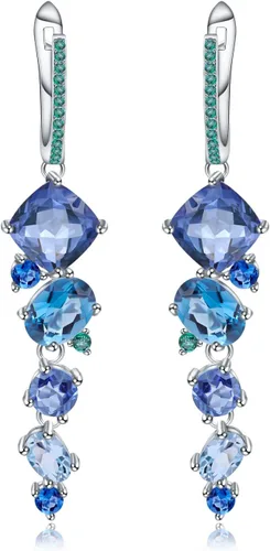 Pendientes de gota irregulares de plata de ley con cierre trasero, topacio natural de cuarzo místico original, hechos a mano, magníficos pendientes