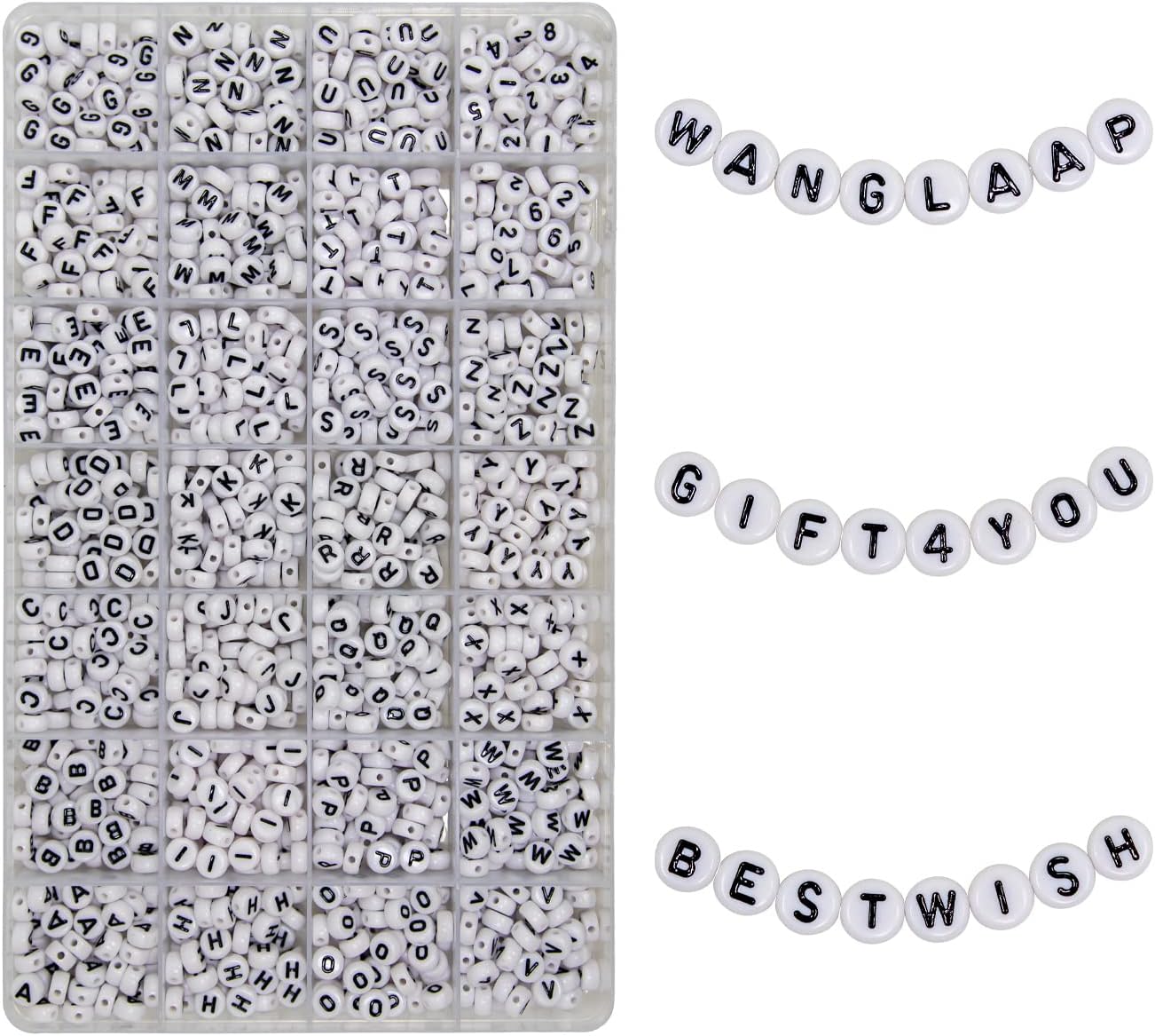 Juego de 1450 cuentas de letras redondas de acrílico de 0.16 x 0.27 pulgadas, cuentas de las letras del alfabeto de la A a la Z (vocales Blanco y