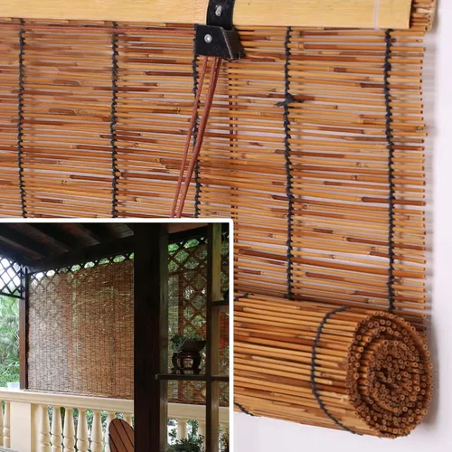 Persianas de bambú para patio al aire libre, cortinas enrollables de bambú, cortina retro de junco, 202428323943475155 ancho, para cocina, cuarto