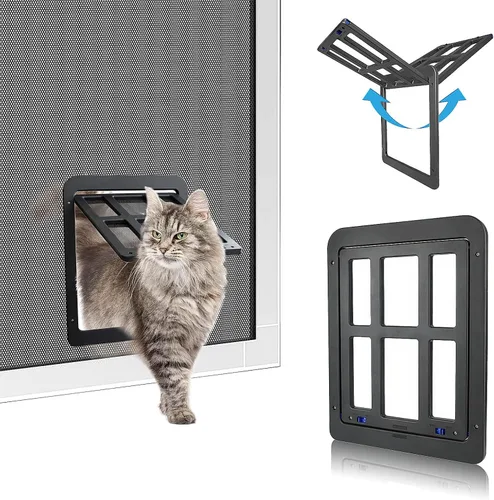 Puerta mosquitera para gatos: una puerta independiente para mascotas hará que su vida sea más convincente, le dará a su gato o perros pequeños libertad para ir y venir al patio o balcón, sin necesidad de abrir la puerta todo el día. Cierre automático del imán: los imanes en la solapa y el marco son lo suficientemente fuertes como para cerrar la puerta después de que su mascota pase, pero no demasiado para que los gatos puedan abrirse fácilmente. También hay 2 cerraduras en la solapa de la puerta para mantener cerrada cuando sales de la casa. Fácil de instalar: solo necesita un cuchillo para cortar la pantalla y un destornillador para instalar los tornillos, instalar con dos personas será más fácil. El paquete incluye tornillos y manual de instalación, las pantallas no están incluidas, necesitas utilizar la pantalla que se cortó antes. Duradero y resistente: marco de puerta hecho de plástico ABS resistente, duradero y no se deforma incluso con la luz solar fuerte del verano. Puedes instalar esta puerta para mascotas en una puerta mosquitera, ventana o puerta corredera. Tamaño de la puerta pequeña para perritos: Marco exterior: 9.9 "x 12.4", solapa de la puerta interior: 8.3 "x 10.3", el grosor de la puerta para mascotas: 0.4 ", adecuado para gatos o perros de raza pequeña.
