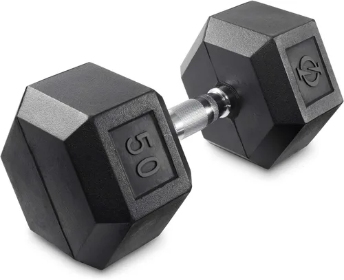 Construcción resistente: la mancuerna hexagonal recubierta de goma está hecha de hierro fundido sólido con un revestimiento de goma fuerte en cada extremo para garantizar la durabilidad. Ya sea que estés empezando o un levantador de pesas experimentado, esta mancuerna es una gran adición a cualquier entrenamiento. Cabezas en forma de hexágono: las cabezas en forma de hexágono evitan que la mancuerna ruede durante los entrenamientos. Esta forma también permite que la mancuerna se almacene fácilmente cuando no esté en uso. Mango moleteado: El mango está diseñado con acero sólido cromado resistente para una larga durabilidad. Este mango ergonómico moleteado evita el deslizamiento y proporciona un agarre cómodo y seguro. Versátil: esta mancuerna hexagonal recubierta de goma ofrece la capacidad de realizar un entrenamiento de cuerpo completo o dirigirse a grupos musculares específicos. Las pesas también admiten una amplia gama de ejercicios de entrenamiento de fuerza tanto en interiores como en exteriores. Múltiples opciones de peso: cada uno de los pesos está marcado en libras para ser fácilmente identificados durante su entrenamiento. Estas mancuernas vienen en opciones individuales y de juego, y están disponibles en pesos de 3 libras a 50 libras. Los juegos de mancuernas vienen en 3, 5, 8, 10, 12, 15 y 20 libras. Las mancuernas individuales vienen en 25, 30, 35, 40, 45 y 50 libras.