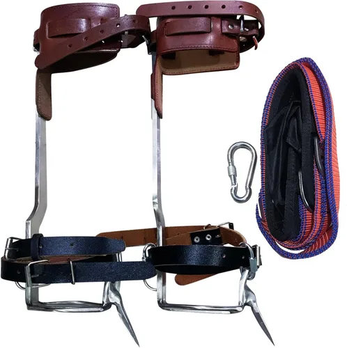 Diseño científico: la construcción ergonómica distribuye la presión, se adapta a la parte inferior de la estructura del pie, te mantiene más cómodo al escalar árbol. La capacidad máxima de carga es de aproximadamente 300 libras (297.6 lbs). Nuevo diseño: Después de años de investigación, descubrimos que los picos y picos tradicionales de escalada de árboles están del mismo lado. Hará que tus piernas se vuelvan inestables. Existen riesgos de seguridad. Por lo tanto, hemos hecho grandes cambios, artesanía perfecta y seguridad mejorada. Tal vez tengas algunas molestias al principio. Versión mejorada: las correas para los pies de los picos de escalada de árboles están hechas de piel de ganado. Equipo de arbolista más fuerte y cómodo. Los picos de escalada de árboles para trabajo de árboles se adaptan a linieros, tala a gran altitud, recolección de cocos, aventura salvaje, caza al aire libre, etc. Paquete incluido y garantía de calidad: Obtendrá un conjunto de picos de escalada de árboles (2 pares de correas para pies, 2 pares de correas, 1 juego de cinturón) Si tiene algún problema con el uso y la calidad del producto.