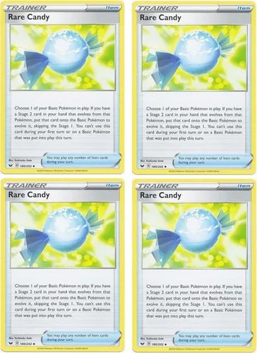 Pregunta sugerida sobre Pokemon Tarjeta - Caramelos Raros - Base de Espada y Escudo - Juego de Lote de 4 Cartas - 180/202 Poco común ¿Este producto sí me sirve para lo que necesito?