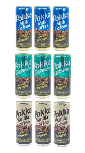 POKKA - Juego de 9 cafés con leche, café de vainilla, capuchino, 8.1 onzas líquidas (8.1 fl oz) cada uno (leche-vainilla-capuchino (3 de cada uno))