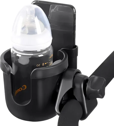 Portavasos universal para cochecito con estante de almacenamiento para cochecitos de teléfono celular, soporte de bebida de rotación de 360 grados