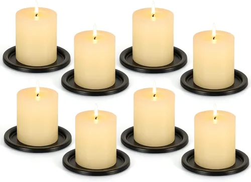Portavelas de Placa de Hierro Negro - Juego de 8 |3.8" Diám. x 0.2" Alt.| Placa Decorativa de Hierro para Velas de Pilar, Elegante Soporte de Velas