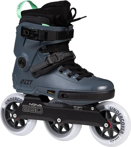 High-performance urban inline skates - The Powerslide Next Pro 110 are robust freestyle skates with 3 x 110 mm / 85A hardness wheels for maximum speed, control and agility - ideal for city rides, freeskating and tricks. Innovative Trinity 3-point system - Thanks to the deep stand height and perfect power transmission, these urban inline skates offer stability, reduced vibrations and optimal balance - perfect for beginners and professionals. Comfortable and adjustable Myfit liner - The heat-mouldable inner shoe with anatomical fit ensures perfect grip and comfort. The individually adjustable shell and cuff allow a perfect fit for any riding level. Durable & Fast Wheels - Equipped with high-quality Undercover Raw 110mm wheels and Wicked ABEC 9 bearings for high speed, maximum smoothness and best performance - ideal for long distance & stunts. High-quality and lightweight design - The sturdy 6061 aluminium frame offers a perfect combination of lightness, manoeuvrability and robustness, so you can master any terrain with these premium inline skates.
