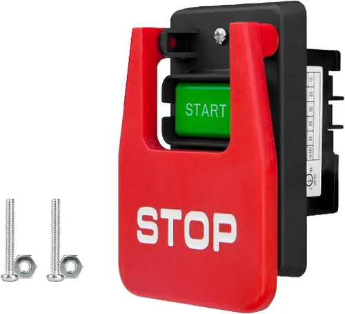 INCLUYE: Interruptor de paleta de doble voltaje de 120/230V OPERACIÓN LIBRE DE MANOS: Cuenta con una gran pala de parada de emergencia roja que puede activarse fácilmente con la rodilla, el muslo o la cadera, eliminando la necesidad de alcanzar debajo de la mesa. Proporciona un rápido corte de energía para mejorar la seguridad y la eficiencia del flujo de trabajo en cualquier entorno de taller. AMPLIA COMPATIBILIDAD: Clasificado a 120/230V, 28A, hasta 2 HP – compatible con fresadoras, sierras de mesa, taladros de columna, sierras de cinta y otras máquinas de carpintería. Funciona como un interruptor de paleta de repuesto para marcas de herramientas populares, como Craftsman, Shop Fox y Grizzly. La compatibilidad real puede variar dependiendo de la corriente de arranque del motor y el consumo de energía, confirma las especificaciones de tu herramienta antes de la instalación. FÁCIL INSTALACIÓN: Configuración Plug-and-Play sin cableado complicado. Se monta de forma segura en la parte delantera o lateral de su banco de trabajo con tornillos estándar, lo que garantiza un acceso rápido y una mayor seguridad del flujo de trabajo. Construcción duradera: construida con una robusta carcasa de ABS que es a prueba de polvo y resistente a los impactos. Diseñado para soportar un uso intensivo en entornos de taller mientras protege los componentes internos para un rendimiento duradero. CERTIFICADO DE SEGURIDAD: Interruptor monofásico clasificado según los estándares UL con cables resistentes probados para la fiabilidad. Proporciona cumplimiento de seguridad de grado profesional para aplicaciones de carpintería domésticas y comerciales.