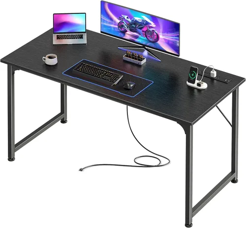 PRAISUN Escritorio para computadora de oficina de 47 x 20 pulgadas con tomas de corriente y puerto USB-C, escritorio para juegos más grande, para