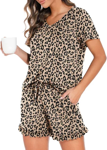 95 % rayón, 5 % licra Imported Cierre de Pull on Lavado a máquina Material: este conjunto de pijama de 2 piezas está hecho de 95% rayón + 5% elastano, lo que te da una sensación suave y cómoda. Características: el diseño de cuello en V de la parte superior y los pantalones cortos con volantes con bolsillos y una cintura elástica hacen que sea un estilo relajado y relajado. 【Opción】: este conjunto de pijama es perfecto para llevar en casa, con una bonita camiseta y pantalones cortos con volantes que combinan perfectamente, para que puedas mantenerte elegante mientras estás en casa. Los pantalones cortos de cintura ajustable te permiten estirar tu cuerpo al contenido de tu corazón. Es la elección perfecta para el armario de una mujer. Ocasión: el conjunto de pijama suelto es ideal para descansar o relajarse el fin de semana, y su estilo casual lo hace discreto cuando los invitados lo visitan. También es un buen regalo para tu novia, esposa o amiga cercana.Tabla de tallas y aviso: consulta y selecciona el tamaño adecuado: S = (EE.UU. 4-6), M = (EE.UU. 8-10), L = (EE.UU. 12-14), XL = (EE.UU. 16-18), XXL = (EE.UU. 20). Lavar a máquina / no usar blanqueador.