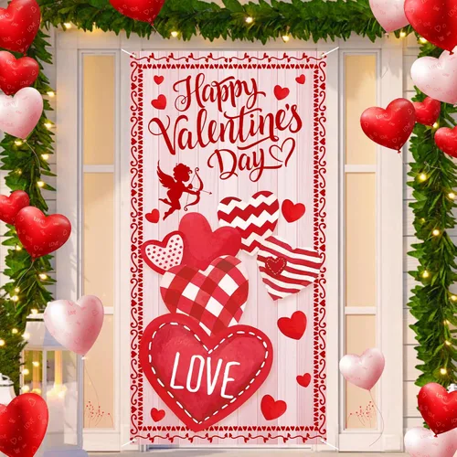 Probsin Pancarta para el día de San Valentín, cubierta de puerta de 6 x 2.9 pies, decoración de puerta de San Valentín, corazón de amor, cupido, suministros de fiesta para el día de San Valentín, suministros para colgar, decoración de pared, tablero de anuncios con ojales de latón para decoración de puertas interiores y exteriores