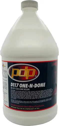 One-N-Donees una solución de un solo paso para un interior limpio, vestido y de fábrica. Puede limpiar cualquier superficie interior mientras agrega una capa de protección para ayudar a prevenir el agrietamiento de los fuertes rayos UV y reducir la cantidad de acumulación de polvo. Este limpiador y aderezo todo en uno están fortificados con agentes especiales de bloqueo UV, aditivos antiestáticos para ayudar a repeler la acumulación de polvo mientras deja un acabado mate no graso en todas las superficies y deja un agradable aroma a cereza y vainilla. One-N-Donees la solución definitiva para una limpieza de un solo paso y viste todas tus superficies interiores, incluyendo tableros, paneles de puertas, cuero, vinilo, plástico, paneles de patada y superficies similares. La versatilidad y facilidad de este producto ahorrará tiempo, dinero y, de hecho, es un cambio de juego. Simplemente rocía One-N-Done sobre una toalla de microfibra y limpia la superficie dejando un acabado satinado, protección y un olor agradable a medida que avanzas. ¡Es así de fácil! Haga clic aquí para una demostración de video