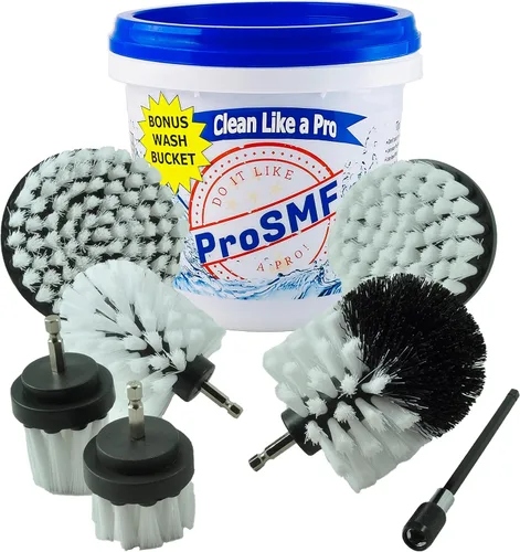 Grado profesional: ya sea que seas un entusiasta del bricolaje o un limpiador profesional experimentado, nuestros cepillos de nailon están diseñados para mayor durabilidad y eficiencia. Diseñado para un rendimiento excepcional en varias superficies, asegurando resultados consistentes de calidad profesional. Elimina fácilmente las manchas difíciles y la mugre. LLEVE LA LIMPIEZA AL SIGUIENTE NIVEL: Perfecto para detalles de automóviles, alfombras, tela, cuero, vinilo, neumáticos, ruedas, llantas, alfombrillas, vidrio y espejos. Este juego de cepillo de taladro es imprescindible para lograr resultados profesionales. AHORRA TIEMPO Y BAJA FATIGA: Di adiós al tedioso lavado de manos, dolores de brazos y muñecas. Simplemente conecta estos cepillos de fregado a tu taladro y deja que su potencia haga el trabajo duro por ti, de forma rápida y efectiva. CUBO DE LAVADO/ALMACENAMIENTO INCLUIDO: Además de los 6 accesorios de cepillo y la barra de extensión de 6 pulgadas, su kit incluye un versátil cubo de almacenamiento y lavado. Este cubo se puede utilizar con tu solución de limpieza favorita y luego simplifica la limpieza y garantiza un almacenamiento ordenado para todos tus accesorios, haciendo que tus tareas de limpieza sean aún más convenientes. Garantía de satisfacción del cliente: estamos seguros de que te encantará tu nuevo kit de cepillos de taladro y los resultados que ofrecen. Si no eres feliz, nosotros tampoco. Nuestros productos están respaldados por nuestra garantía de satisfacción de 90 días. Contáctenos para una devolución o reemplazo sin complicaciones. Taladro no incluido.