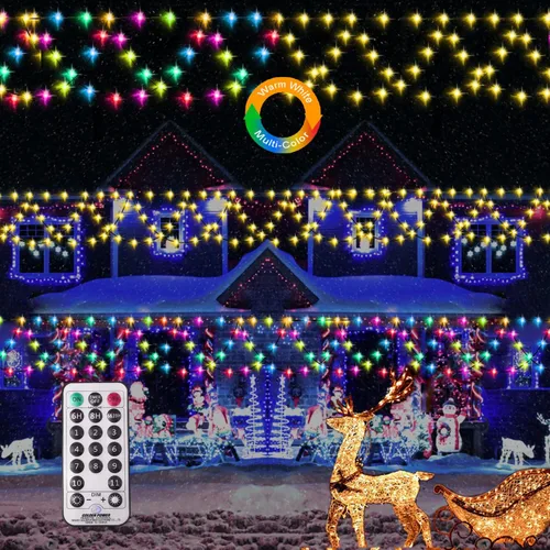 ✨【PUHONG Color Changing Christmas Lights】 Comes With 3 Color Modes, You Can Set Multicolor Only, Warm White Only Or Combination Of Warm White And Multicolor For rooflines, fence, Eaves Decorations. and you can change different color everyday like you have 3pcs christmas light in once time.The 16ft Extend Long Power Cord Make It Very Easier For Outdoor Indoor Wedding Party Patio Garden Christmas Tree Decorations.