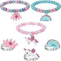 Juego de anillos de pulsera de unicornio – Pulsera de corona brillante arcoíris para niñas pequeñas – Juego de anillos de joyería para niñas pequeñas