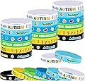 Lesnala Paquete de 48 pulseras de concientización sobre el autismo, piezas de rompecabezas de colores, pulsera de silicona con mensajes inspiradores