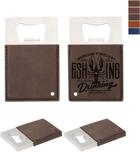 PYD Life Paquete de 8 abrebotellas de tarjetas de crédito de acero inoxidable con mango de cuero marrón en blanco de 2.2 x 3.3 pulgadas para grabado
