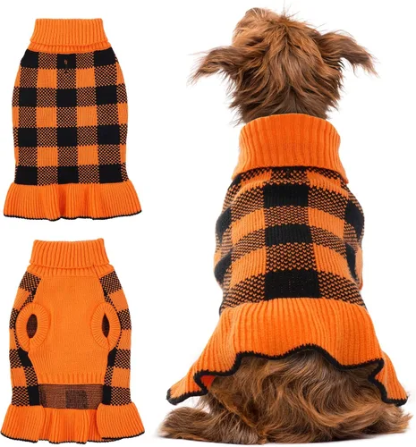 【Diseño de cuello de torta】Este suéter de punto único para perro con un cuello alto elástico dará doble protección al cuello de tu perro, el material del suéter de Navidad para perro es agradable al tacto y suave, y puede mantener a tu mascota caliente y cómoda en otoño e invierno. Estilo clásico a cuadros: vestido de suéter para perro a cuadros británicos, clásico pero nunca pasa de moda, suéter para mascotas con romántico rosa/rojo y adorable dobladillo con volantes, hará que tu mascota brille y encanto entre la multitud. Múltiples funciones: suéteres navideños para perros adecuados para primavera, otoño e invierno, y perfectos para el uso diario, fiestas de vacaciones, Halloween, Navidad, cumpleaños, bodas, desfiles, sesiones de fotos, citas u otras actividades en interiores y exteriores. Fácil de poner y quitar: los suéteres de punto para perro de otoño son suaves, flexibles y elásticos, puedes ponerlos fácilmente en tu amigo peludo y quitárselo. Lavable a máquina con un color similar en agua fría y secar en plano. 【Diseño único】Vestido clásico atemporal de cuello alto con agujero para correa y arnés de diseño inteligente. Puedes ponerte fácilmente cualquier collar o arnés y pasear a tu perro sin ningún problema.