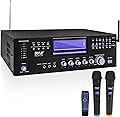 Pyle Sistema amplificador de micrófono inalámbrico de 4 canales, receptor estéreo de audio para el hogar con reproductor de CD/DVD, micrófonos UHF