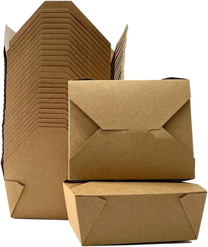 Tamaño y cantidad: paquete de 50, 48 onzas, superior: 6.7 x 5.5 x 2.5 pulgadas/inferior - 6.0 x 4.7 x 2.5 pulgadas Mantén los alimentos frescos durante más tiempo: las cajas para llevar de FEXTA Kraft Brown son perfectas para mantener tu comida fresca, así como para refrigerar y calentar en el microondas o comida sobrante. También son una alternativa ecológica a las loncheras. Diseño tolerante al calor y a prueba de fugas: estas cajas grandes fueron especialmente diseñadas para contener alimentos grasosos sin que los líquidos se filtren. Tus comidas estarán empaquetadas de forma segura en estos contenedores de viaje para llevar. También son aptos para microondas. Perfecto para catering: ya sea que esté organizando una fiesta o dirigiendo un negocio de servicio de alimentos, estos recipientes son perfectos para servir platos fríos y calientes. Este producto está hecho de papel de grado alimenticio, que es reciclable. Ideal para lugares respetuosos con el medio ambiente. Adhesivo: Se adhiere de forma segura a menos que intencionalmente use la fuerza para arrancarlo. Fácil de llevar en una bolsa o del tamaño adecuado para llevar.