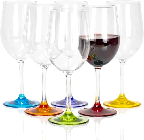 Red Co. Juego de 6 copas de vino clásicas de acrílico transparente de 12 onzas líquidas para exteriores con bases de colores