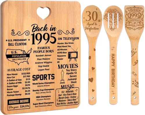 Pregunta sugerida sobre Regalos de cumpleaños número 30 para mujeres – Regalos de cumpleaños número 30 para hombres, tabla de cortar, hecha de bambú grabada "Year 1995 News ¿Qué incluye exactamente este set?
