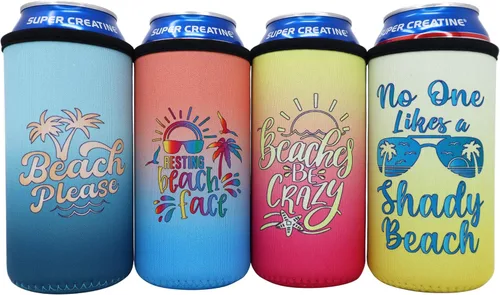 Regalos de playa imprescindibles: estas fundas aisladas para latas se colocan planas para usar muy poco espacio en una bolsa de playa, maleta o bolsillo, por lo que puedes llevarlas fácilmente en una luna de miel tropical, campamento en la playa, o mantenerlas en tu enfriador de playa para el próximo viaje espontáneo de un día a la costa. Simplemente envuelve tu bebida en este soporte para bebidas de playa para ayudar a mantener el refrigerio fresco durante el mayor tiempo posible. Si te gusta el crucero, asegúrate de agregarlos a tu lista de accesorios imprescindibles para cruceros. Regalos pequeños de playa para mujeres: ya sea que le gusten las excursiones frecuentes de un día o prefiera vacaciones prolongadas en la playa, tener las necesidades adecuadas de playa es imprescindible. Los diseños únicos y de alta calidad de estos paquetes de 4 los convierten en el regalo perfecto para el tema de la playa. Así que si necesitas regalos únicos y útiles con temática de playa para mujeres que lo tienen todo, estos son la elección perfecta para rellenos de calcetines de Navidad, día de San Valentín, aniversario de boda, cumpleaños o regalos de inauguración de la casa en la playa. Decoraciones para fiestas en la playa: los divertidos diseños y frases de estos refrigeradores (Beach Please, Resting Beach Face, No One Likes A Shady Beach y Beaches Be Crazy) son divertidos recuerdos de fiesta para una boda temática de playa o regalos de anfitriona para una fiesta en el patio trasero en la playa. Día de los Caídos, 4 de julio, y todas las demás fiestas piden el refresco más frío que pueda obtener, así que asegúrese de aislar sus bebidas para mantenerlas frías en los días calurosos. Ideal para invierno: esta funda aislante para bebidas también es ideal para climas fríos, lo que permite que tus manos se mantengan calientes mientras disfrutas de tu bebida fresca, así que mantenla a mano en Acción de Gracias, Navidad, Año Nuevo y todas las demás reuniones de invierno. La cubierta aislante también es ideal para climas fríos, lo que permite que tus manos se mantengan calientes mientras disfrutas de tu bebida fresca, así que mantenla a mano en Acción de Gracias, Navidad, Año Nuevo y todas las demás reuniones de invierno. Suave y compacto: estos refrigerantes miden 5.5 pulgadas de alto y se adaptan cómodamente a recipientes de bebidas con una base redonda que mide hasta 2.5 pulgadas (2.6 in) de diámetro. Compatible con latas de bebida energética Monster, Rockstar y Bang de 16 onzas, así como con latas de 16 onzas. Artesanía latas de niño alto. Es fácil de agarrar y permanece estable cuando se coloca en una superficie resistente. El material es ligeramente elástico, por lo que es fácil de poner y quitar, mientras que garantiza un ajuste cómodo en latas de bebida de 16 onzas.