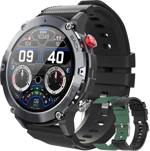 Reloj inteligente para hombre, resistente al agua, reloj inteligente táctico, Bluetooth, llamadas diarias, altavoz de 1.32 pulgadas, pantalla táctil HD, reloj rastreador de fitness, compatible con iPhone Samsung Estándar de grado militar. El reloj inteligente militar tiene 10 certificaciones de grado militar y se puede utilizar en condiciones ambientales adversas, como resistencia al calor de 70 °F, resistencia al frío de -40 °F, resistencia al frío; 120 horas de resistencia a la humedad, 96 horas de resistencia al espray de sal. Marcación Bluetooth y altavoz integrado: el reloj inteligente táctico soporta dial Bluetooth y contesta llamadas. Puedes hacer llamadas directamente y responder llamadas en tu reloj. Libérate de tu teléfono, especialmente cuando estás conduciendo, o trotando, etc. Altavoz integrado, el reloj inteligente para hombre no solo puede controlar la reproducción de música del teléfono, sino también reproducir la música en sí. Seguimiento de Actividades La dureza de adentro hacia afuera lo convierte en tu compañero confiable para una batalla prolongada. Cuando uses un reloj inteligente y hagas ejercicio con el teléfono celular, el seguimiento de actividad GPS en tu teléfono celular se compartirá y mostrará en la aplicación "FitCloudpro". Rastreador de actividades durante todo el El reloj inteligente comienza un buen día contigo, soporta 20 modos deportivos, puede medir tu presión arterial y frecuencia cardíaca en cualquier momento y en cualquier lugar. Puede seguir registrando tus datos de entrenamiento, incluyendo frecuencia cardíaca, calorías quemadas, pasos, etc. Te ayuda a mantener un estilo de vida saludable y conocerte mejor. Cámara de control en tu muñeca Conéctate a la aplicación "FitCloudpro", controla directamente la cámara del teléfono para grabar tu preciado momento agitando tu muñeca. Saltar canciones sobre la marcha Conéctate a la aplicación "FitCloudpro" y enciende tu reproductor de teléfono o aplicación. Ajusta el volumen, reproducir/pausar y saltar pistas en el reloj. Otras funciones Encuentra el teléfono celular, recordatorio sedentario, recordatorio de medicamentos, recordatorio de agua potable, recordatorio de reloj despertador, reunión para recordar. ¿Qué hay en la caja? 1 reloj inteligente con correa. 1 correa de reloj negra. 1 correa de reloj verde. 1 cable de carga. 1 manual de usuario (idioma español no garantizado).