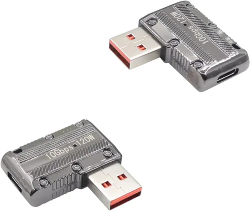 RIIEYOCA Adaptador USB 3.1 a tipo C Adaptador USB 3.1 GEN 2 macho a hembra tipo C de 90 grados Característica: 1. Soporta transferencias ultrarrápidas de hasta 10Gbps. 2. Soporta carga de alta velocidad de 120 W. 3. Los dispositivos de interfaz USB son ampliamente compatibles con computadoras, extensores USB, cabezales de carga, cargadores de automóvil, etc. La interfaz 4.type C es ampliamente utilizada para auriculares tipo C, recintos de disco duro, teléfonos móviles, iPad, etc. 5. El material de aleación de zinc es más duradero y duradero. 6. Aspecto Cyberpunk con indicadores LED. 7. Viene con un llavero. 8.Package: 2 x USB 3.1 al adaptador tipo C.