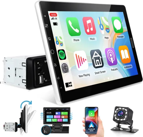 CarPlay y Android Auto + Mirror Link: este estéreo de coche de un solo DIN es totalmente compatible con Apple CarPlay y Android Auto; se conecta a través de cable USB para acceder sin problemas a los contactos del teléfono, correos electrónicos, notificaciones, navegación GPS, música y videos, con control de voz (Siri/Google Assistant) para una conducción segura con manos libres. Compatible con la función de enlace de espejo iOS/Android, refleja la interfaz de tu teléfono a la pantalla táctil grande de 10.1 pulgadas, lo que permite un fácil acceso a aplicaciones móviles y contenido sin tocar tu teléfono. BT 5.0 y radio FM + ecualizador personalizado: equipado con Bluetooth 5.0 para llamadas manos libres estables y nítidas y transmisión de música inalámbrica, eliminando las distracciones de conducción. Radio FM/RDS integrada con sonido estéreo de alta calidad, compatible con modos de búsqueda de canales de ajuste totalmente automático, semiautomático y preciso: estaciones preconfiguradas fácilmente para escuchar música, noticias, boletines e información de tráfico en tiempo real en cualquier momento. El procesamiento electrónico de ecualización de hardware ofrece múltiples modos de sonido, con agudos y graves ajustables para personalizar su experiencia de audio en el automóvil. Entrada de cámara de respaldo y estacionamiento seguro: viene con una cámara de visión trasera fácil de instalar, al cambiar a marcha atrás, la pantalla estéreo del automóvil cambia automáticamente a la imagen inversa con pautas de estacionamiento, lo que te ayuda a juzgar con precisión las distancias y evitar obstáculos. Después del estacionamiento, regresa sin problemas a la página de radio o medios anterior, mejorando considerablemente la seguridad del estacionamiento, especialmente para los nuevos conductores y espacios de estacionamiento reducidos. ️ Control del volante (SWC) y pantalla desmontable: admite la función de aprendizaje del botón del volante, lo que te permite controlar el volumen, saltar pistas, responder llamadas y ajustar los modos multimedia a través de botones del volante, mantén las manos en el volante para una conducción más segura. El diseño de pantalla táctil desmontable de 10.1 pulgadas es conveniente para el almacenamiento y antirrobo cuando el vehículo está desatendido, con táctil capacitivo de pantalla completa para un funcionamiento sensible y suave. Ajuste universal y pantalla HD: tamaño estándar de instalación de un solo DIN (7.008 x 1.969 in), compatible con la mayoría de los modelos de automóvil de 1 DIN. Cuenta con una pantalla IPS de alta definición de 1024 x 600 con calidad de pantalla estándar A, que ofrece colores más ricos, imágenes más claras y ángulos de visión más amplios. Equipado con ranuras para tarjetas USB, AUX y TF para una conectividad versátil: reproduce archivos multimedia o cargue dispositivos móviles, satisfaciendo todas sus necesidades de entretenimiento y uso diario en el automóvil.