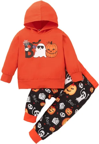 Ritatte Conjunto de ropa de manga larga con capucha y fantasma de calabaza para bebé niño, sudadera con capucha y pantalón para otoño e invierno