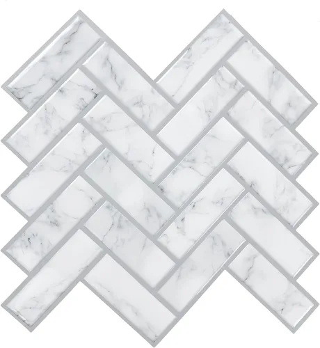 Aplica fácilmente la elegancia del mármol italiano con un intrincado motivo de incrustaciones de azulejos con StickTiles de RoomMates. El mármol clásico de Carrara es un diseño atemporal para cualquier área de la casa y este motivo de imitación de mármol cuidadosamente elaborado con patrón de espiga de diseño aporta belleza eterna a salpicaduras de cocina, baños o áreas de bar. Blanco con manchas de gris a negro, estos StickTiles tienen un acabado brillante 3D que te da el aspecto y la sensación de azulejos de diseño genuinos. Pero a diferencia de las baldosas reales, no necesita equipo pesado (como una sierra húmeda) para cortarlos, ni necesita lechada desordenada o pasta adicional. Simplemente utiliza un cuchillo o tijeras para recortar a medida y trabajar alrededor de áreas difíciles como esquinas o salidas... y simplemente despega y pega