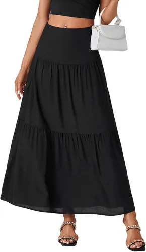 Rooscier Falda larga casual con volantes y cintura alta para mujer