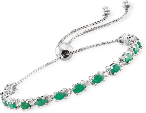Ross-Simons is the authority on luxury classics. An RS exclusive. This verdant bolo bracelet is sure to become your new grab-and-go piece. Here, 4.50 ct. t.w. oval emeralds sit in four-prong settings of sterling silver on a box chain decorated with diamond accents. Adjusts to fit most wrists. Emerald bolo bracelet. Stone InformationGem Type 1: EmeraldStone Cut 1: Good-CutStone Color 1: GreenStone Clarity 1: GreenStone Shape 1: Oval-ShapeStone Creation Method 1: NaturalStone Treatment Method 1: OiledStone Weight 1: 4.50 CaratsNumber Of Stones 1: 15Gem Type 2: DiamondStone Cut 2: Good-CutStone Color 2: G-HStone Clarity 2: I2Stone Shape 2: Round-ShapeStone Creation Method 2: NaturalStone Treatment Method 2: Not-TreatedStone Weight 2: 0.02 CaratsNumber Of Stones 2: 3